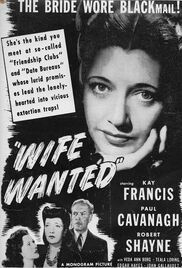![]() | Wife Wanted (1946) Career-slipping movie star Carole Raymond (Kay Francis) buys in as a real estate partner of Jeff Caldwell (Paul Cavanagh). Actually, through his secre ...<more>